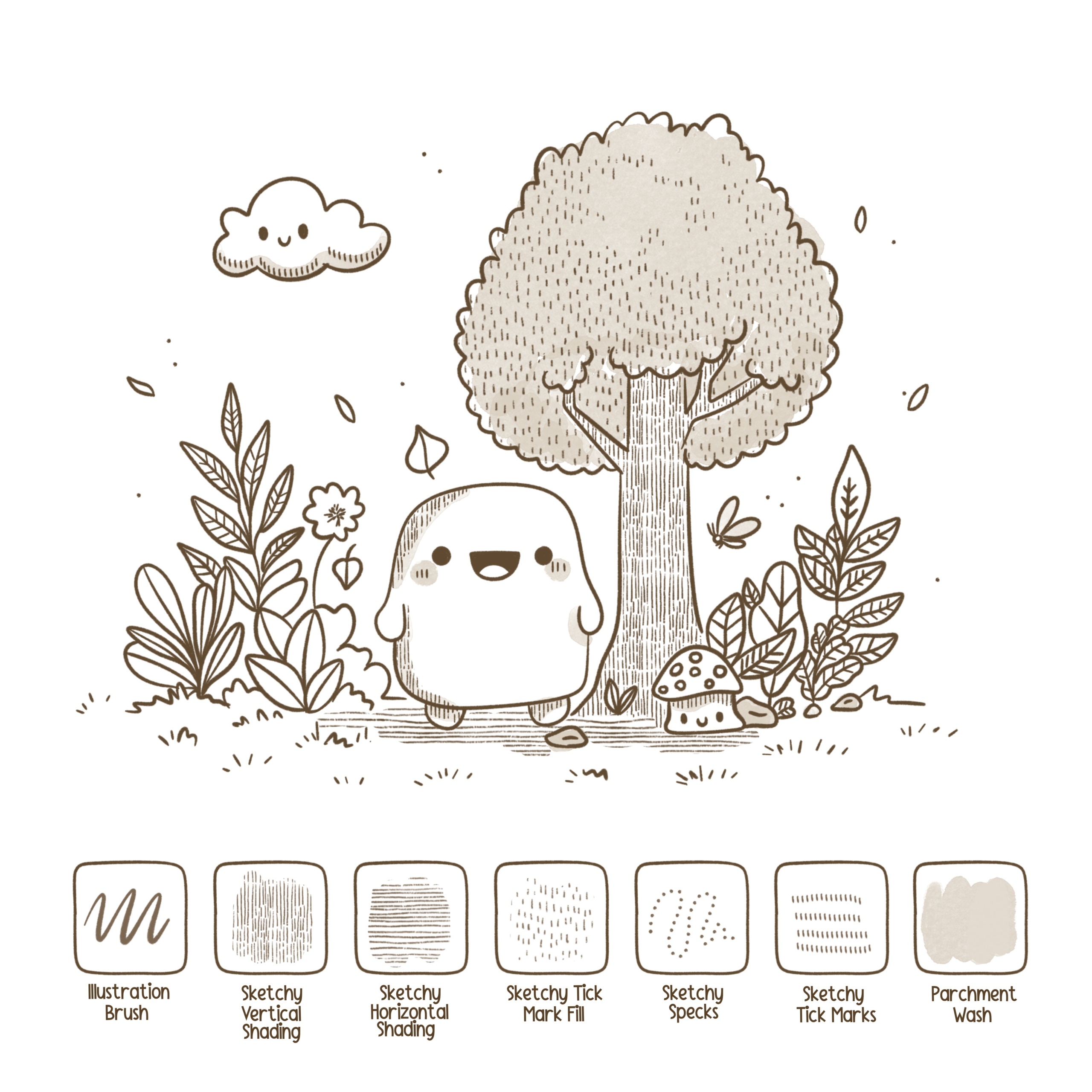 Meet my favorite set yet — a completely updated and expanded version of my original Sketch + Texture Procreate Brush Set! I reach for these brushes every single day for sketching, illustrating, and lettering. The Illustration brush is my go-to for almost every project — buttery smooth with just the right amount of tooth.