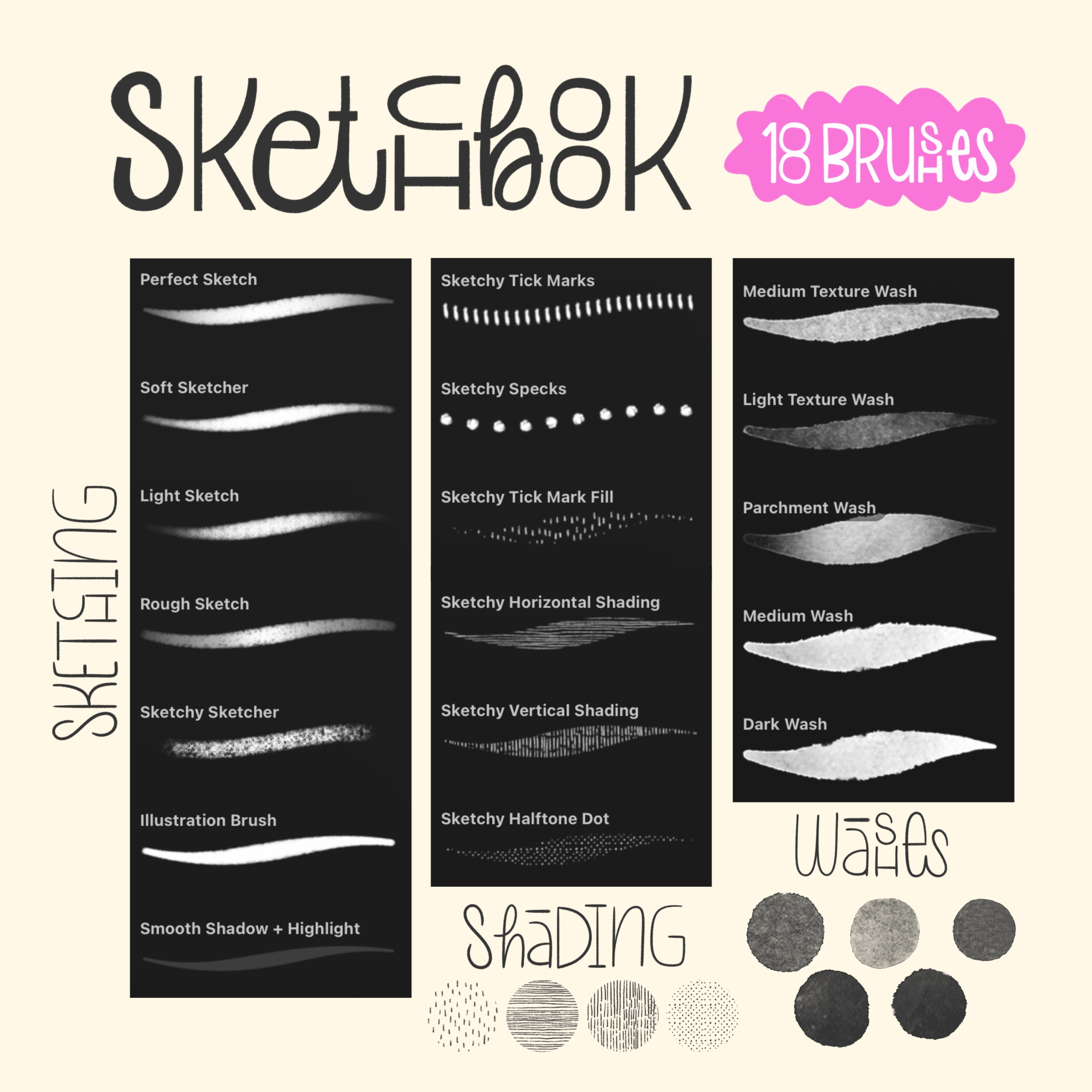 Your purchase includes one digital Procreate brush set (18 brushes total).